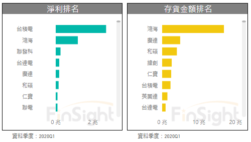 另外,從存貨與淨利的絕對金額排行,可以看到影響整體數據的重點公司。