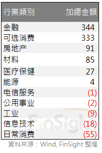 港交所每日都會公布北向資金的十大成交活躍股。我們統計每日的資料,發現北向資金今年以來在金融與可選消費買入的金額最多,而流出金額最多的則是日常消費。這個資料只會計算每日成交金額最大的十檔股票,因此加總金額無法完整反映全部的北向資金,但仍具有一定的參考性。