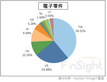 但台灣在電子零組件的成就就很令人驚豔,以台灣的人口與經濟體大小,佔據著全球科技的關鍵中上游位置,全球營收占比將近四成,名列第一!台灣電子零組件集中在晶圓代工、封裝測試、組裝、IC 設計,台灣雖然缺乏強力的品牌廠,但以代工服務為中心的半導體聚落,幫助全球科技大廠在消費電子市場攻城掠地。