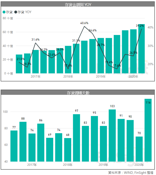 華為 3/31 公告的 2019 年財報也顯示,庫存增加 73.8%,庫存周轉天數從 2018 年的 77 天,提升至 2019 年的 111 天。在中美科技戰打不停的背景之下,多備一點存貨以因應未來不確定性,反映在中國廠商的財報上。