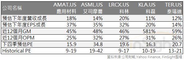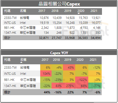 我們也將相關公司的資本支出數據放在同一頁,如此可以從半導體廠商的資本支出對應上游設備廠的業績。