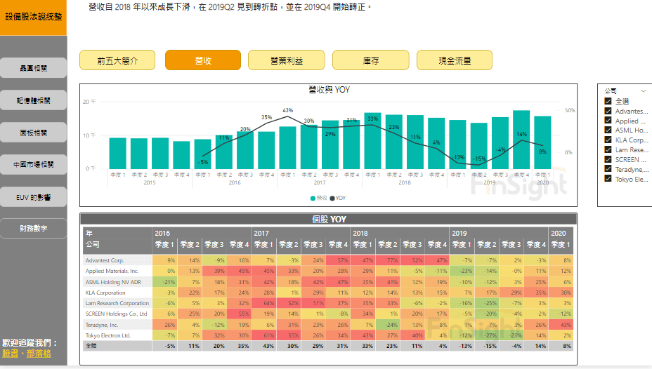 我們在模板的最後,放上半導體相關的廠商各項財務數據,可以點選上方的按鈕選擇想關注的財務數據。