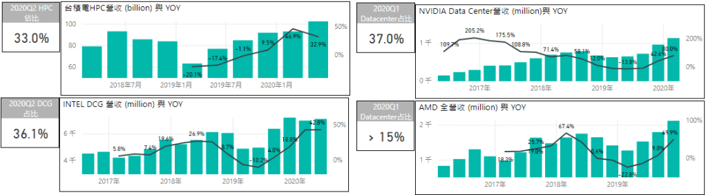 同時,借助先進製程代工的台積電聯盟 AMD、NVIDIA 將持續增加 HPC 市場的市占。