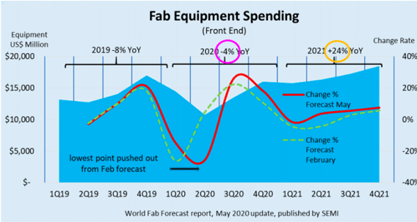 圖二、半導體協會在 2Q20 對半導體設備支出的預估值(需求只是遞延而非消失)
