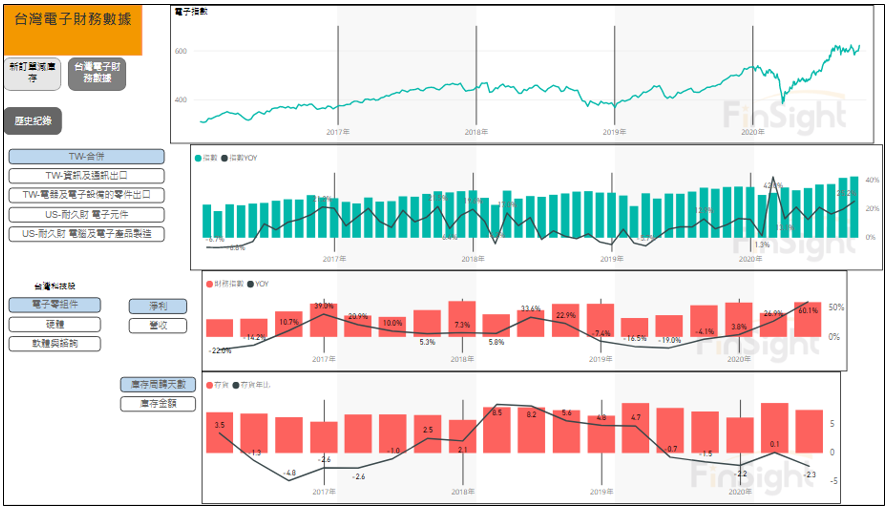 FinSight 將數據整理成互動模板,方便在不同指標間切換,以及快速回顧過去電子指數與各指標的變化,有興趣的人可以點進我們的網站。(模板連結)