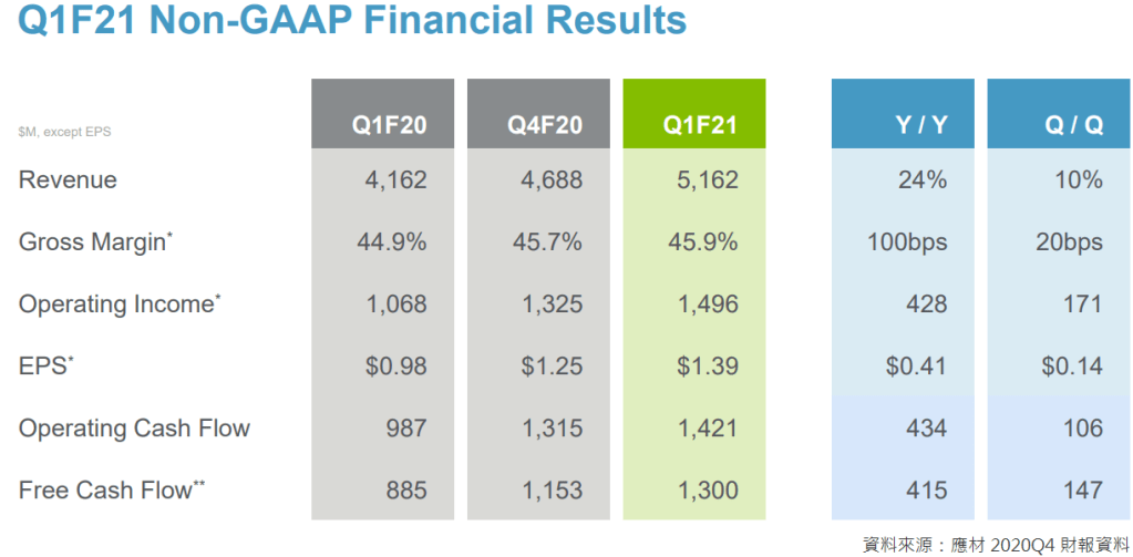 2020Q4 財報:營收 $5.162B,成長 24% YoY / 10% QoQ,GM = 45.9%,EPS = 1.39。