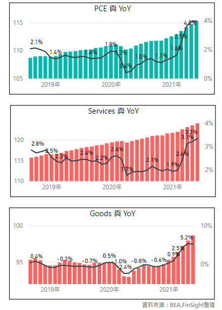 圖三:PCE物價指數 – 總體、服務、商品