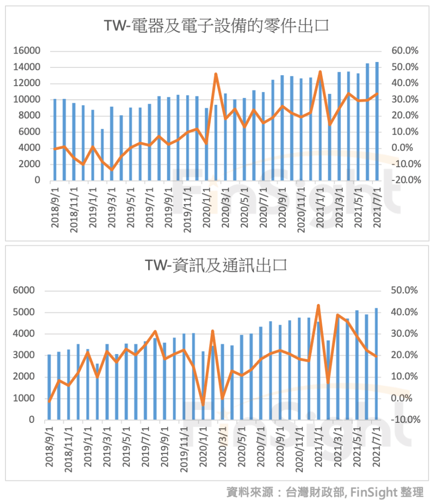 圖二:台灣資訊通信外銷訂單轉弱、電子產品訂單依舊維持強勁