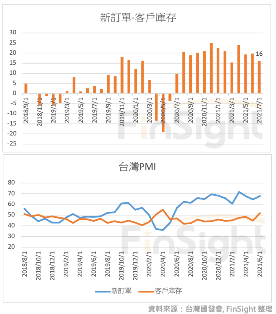 圖三:台灣PMI – 新訂單減客戶庫存、新訂單與客戶庫存