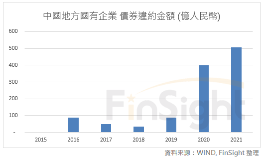 圖六:中國地方國有企業 信用債違約金額(單位:億人民幣)