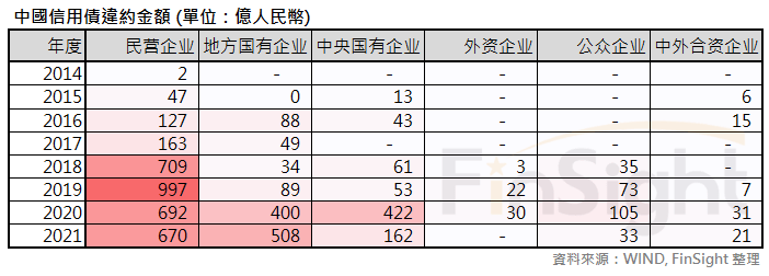 2018 年金融去槓桿時期,民企發行新債遭凍結導致違約潮,市場風險偏好迅速下降。當時 90% 以上違約主體是民企,其中 40% 為上市公司,在 7 月後政府藉由寬信用與紓困基金救市之後,才適度舒緩壓力。