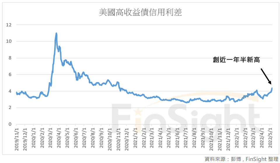 現在高收益債信用利差走高,不只發生在新興市場,也開始展現在美國。以彭博編制的美國高收益債信用利差來看,已經創下一年半新高。而在聯準會縮表、通膨影響企業獲利與消費力道下,後續信用利差走勢一定要持續留意。
