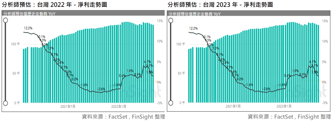 圖六:分析師預估台股 2022 年 / 2023 年淨利走勢