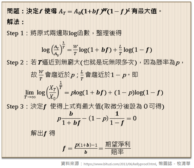 圖一:單一事件賭局的凱利公式推導