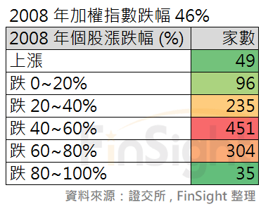統計發現,當年度上漲家數僅 49 家,其中有 10 家是股價小於 10 元的低價投機股,其餘 1121 檔皆難逃下跌的命運。想在大環境不好的時候逆勢做多賺錢,真的好難!