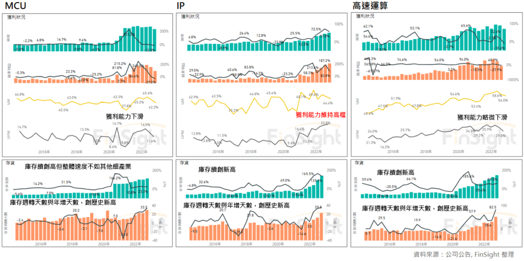 圖七:台灣半導體晶片財務數據 – MCU、IP、高速運算IC