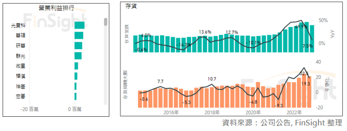電子零組件:短期表現相對好,庫存金額有下滑,但長期仍要觀察需求。
