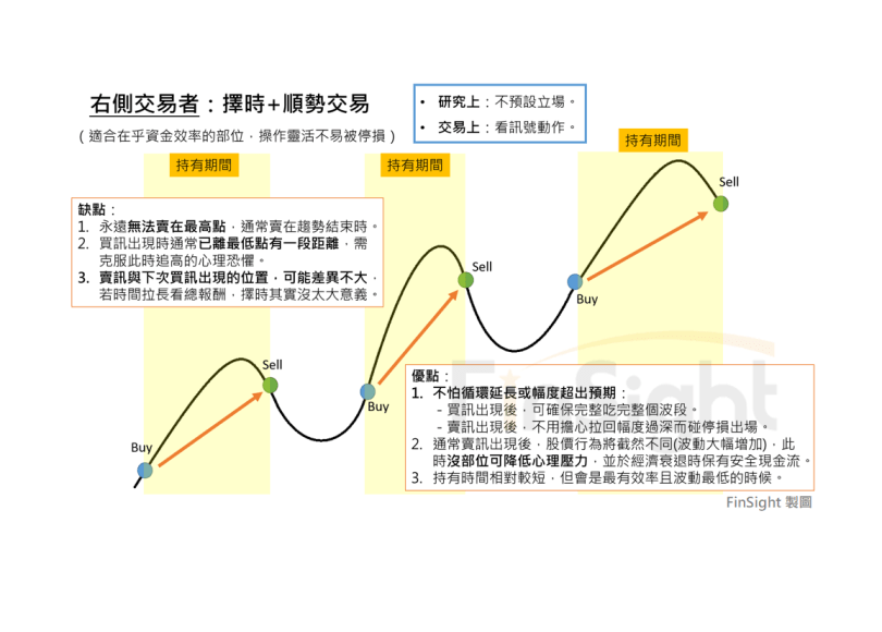 三、右側交易者:採取擇時交易,並不預測立場順勢而為。