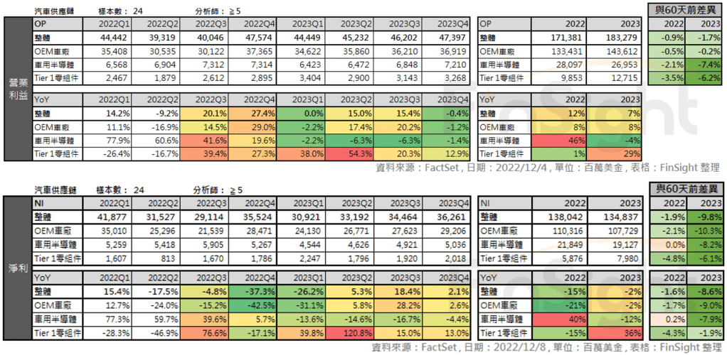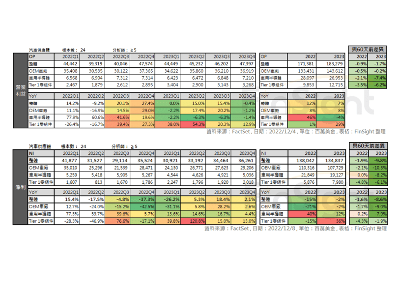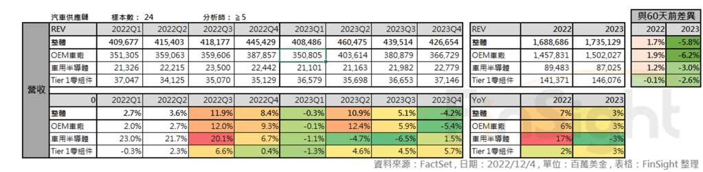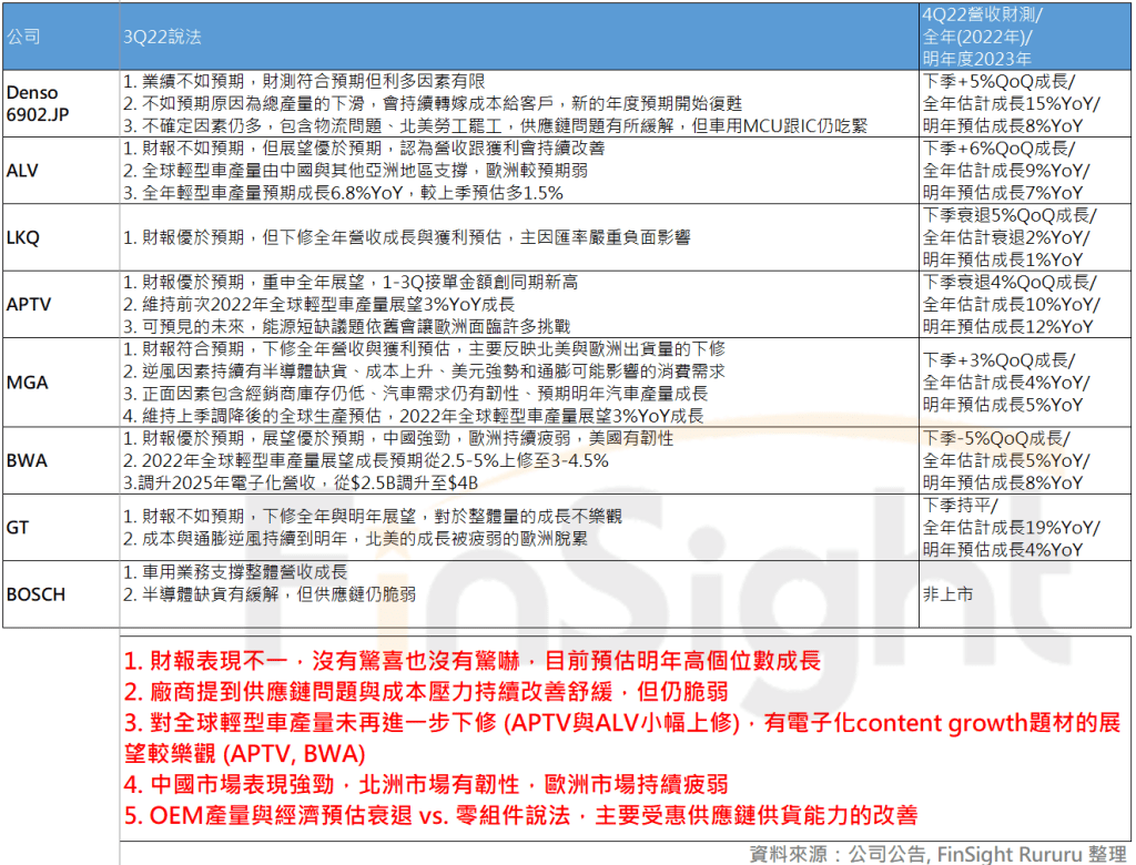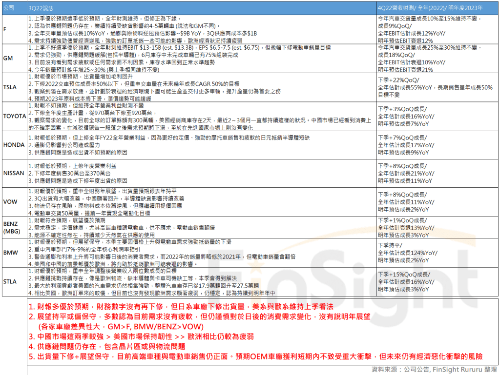3. 全球汽車供應鏈 2022Q3 財報整理:OEM 車廠如履薄冰、Tier1 零組件沒有驚嚇、車用半導體烏雲飄來開始下修