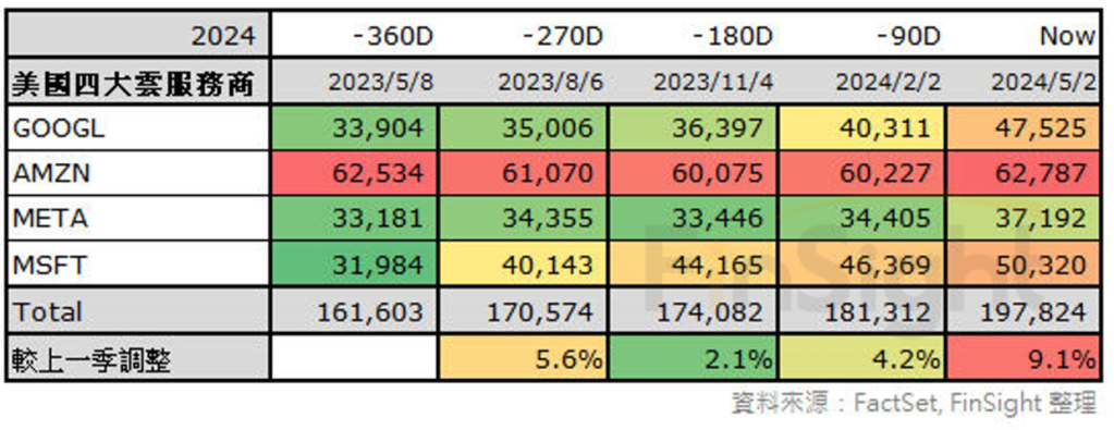 本季上修幅度算歷史上很大的季度,2024資本支出相較於上季預估值提升9%