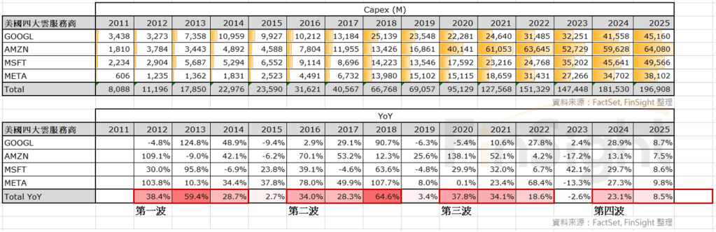 - 參考過去,當資本支出進入上修循環時,容易連續上調兩個季度。本季若公有雲廠商業務成長性持續回升,就有機會再拉高資本支出。