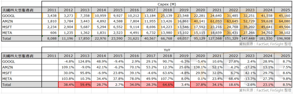 參考過去:我覺得雲端廠商資本支出還有機會上修
