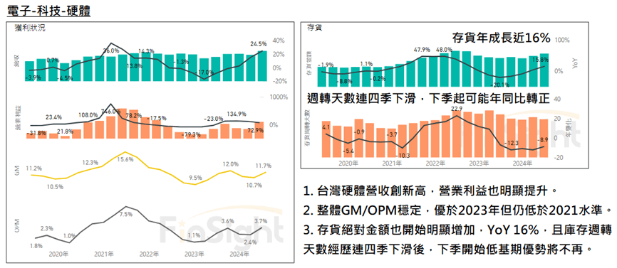 科技-硬體:消費需求不強,營收持續衰退且庫存週轉天數仍在新高